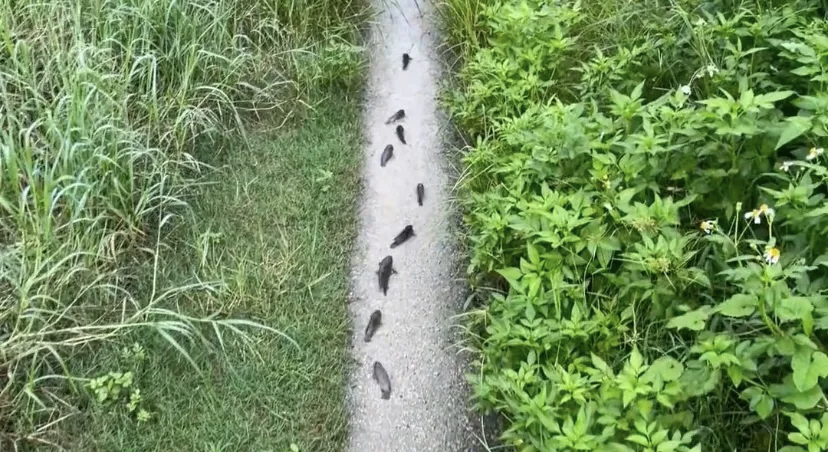 这样在路面上行走的鱼,我还是头回见过,它有个名字叫过山鲫,从名字不难看出是能够爬山路的,甚至有人说它会被水给淹死,真是一下子让我对鱼有了新的认识!