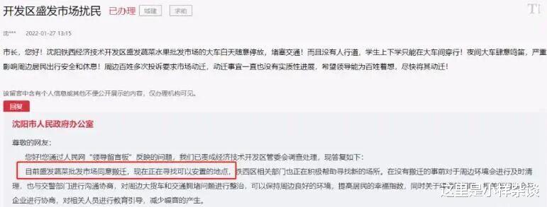 (图片来源于网络)这些主城区的市场附近都有很多住宅项目,这些项目的业主这些年也是在享受购物便利的同时也是深受其害。十分困扰,基本每年都有业主投诉这些市场的扰民问题,这些年也在尝试搬迁这些市场,但是一直没有推动,例如盛发市场,根据领导留言板的回复,盛发批发市场以几次选址均不理想为由拒绝开发区土地储备交易中心对该企业进行测绘、评估。