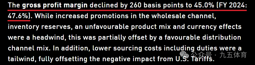 从盈利角度看,彪马2025年第四季度的毛利率下降750个基点至40.2%(2024年第四季度:47.7%),全年毛利率下降260个基点至45.0%(2024财年:47.6%)。