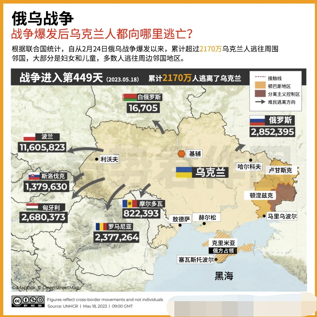联合国公布数据:截止5月18日,已经有超过2170万人逃离了乌克兰!