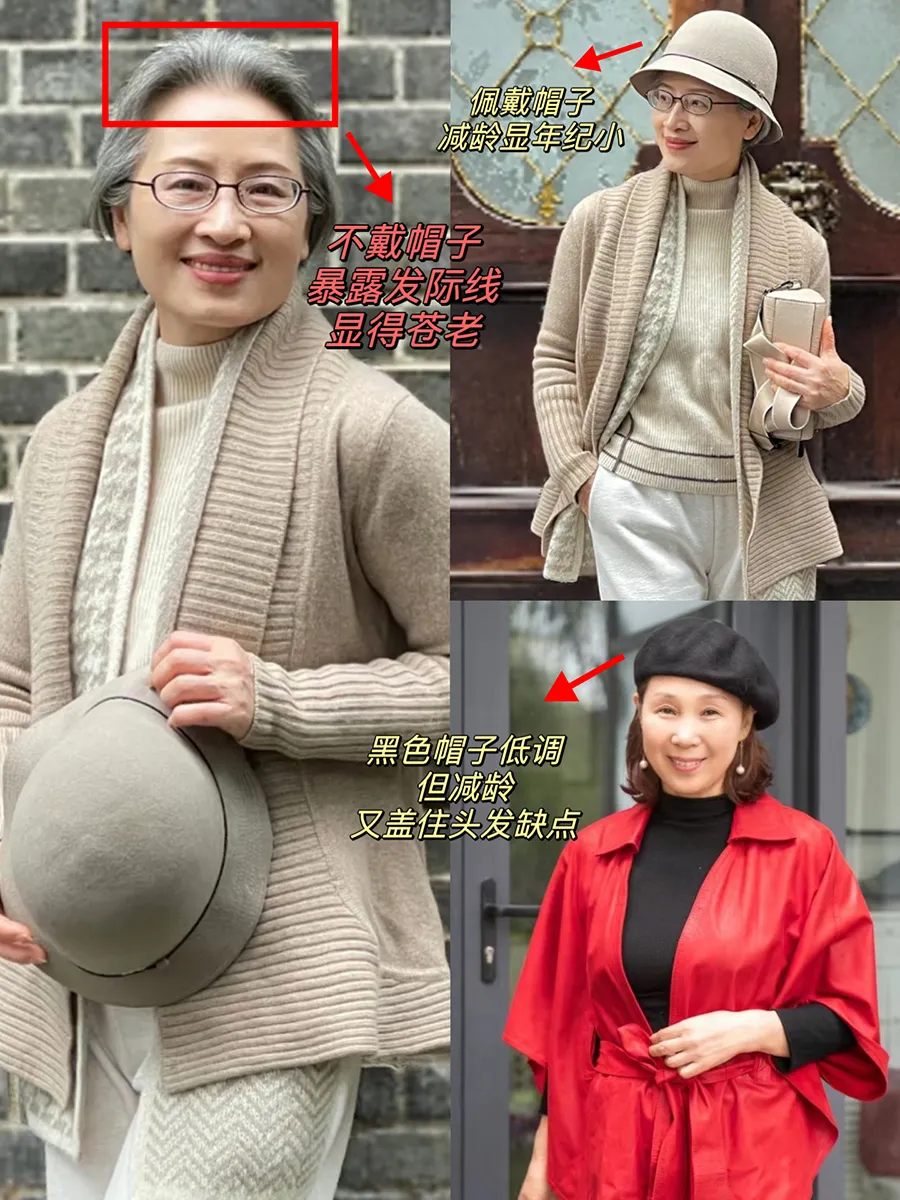 帽子可以修饰脸型,但更重要的是它能让中老年女人看起来更年轻。