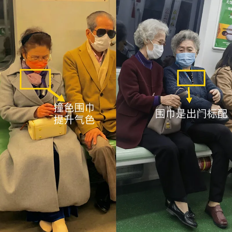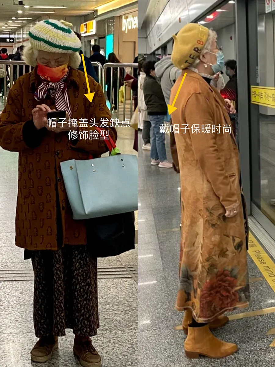 提到这个问题,咱们观察下上海地铁奶奶的穿着打扮,她们都十分热衷于佩戴帽子和围巾,在配饰搭配上很有一套,既做到了保暖又兼顾了时髦。