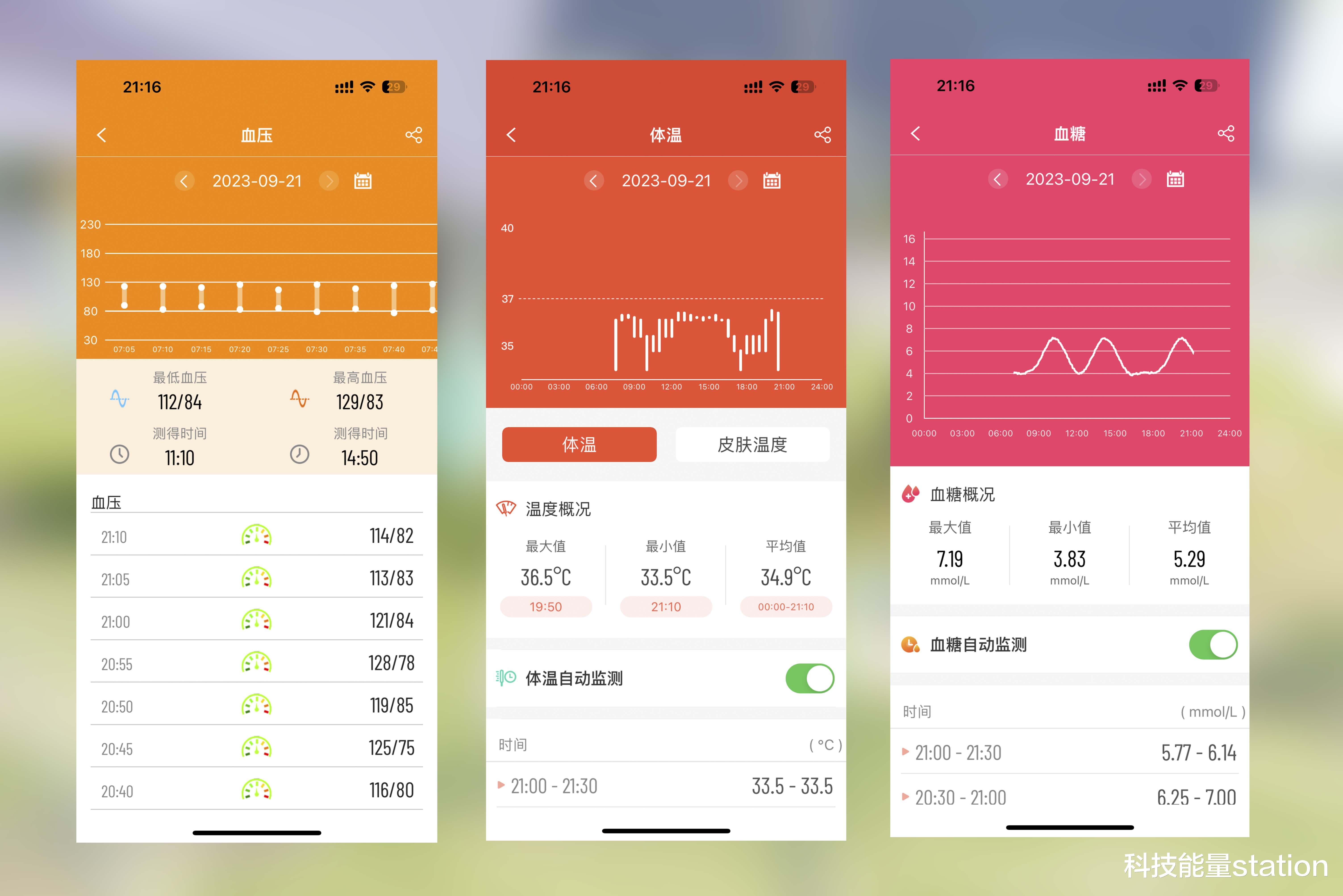 【体温】体温监测会进行常规体温监测和皮肤温度监测,手表对体温的自动监测能够能够描述体温的变化过程和体温平均值,但对于成人来说,体温变化基本能够人为感知。