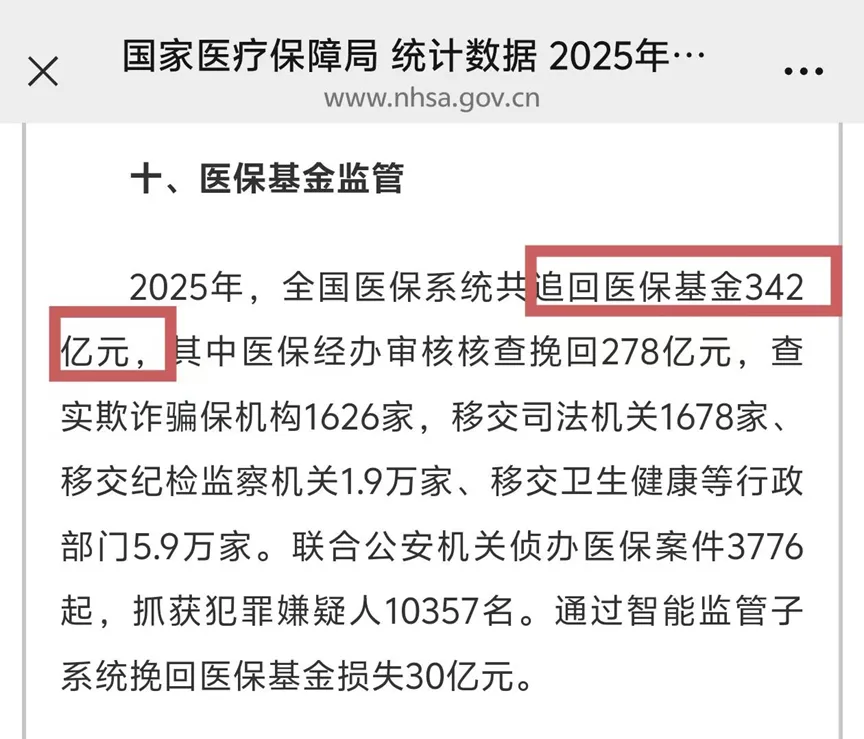3月16日,国家医保局发布《2025年医疗保障事业发展统计快报》:2025年全国医保系统共追回医保基金342亿元。