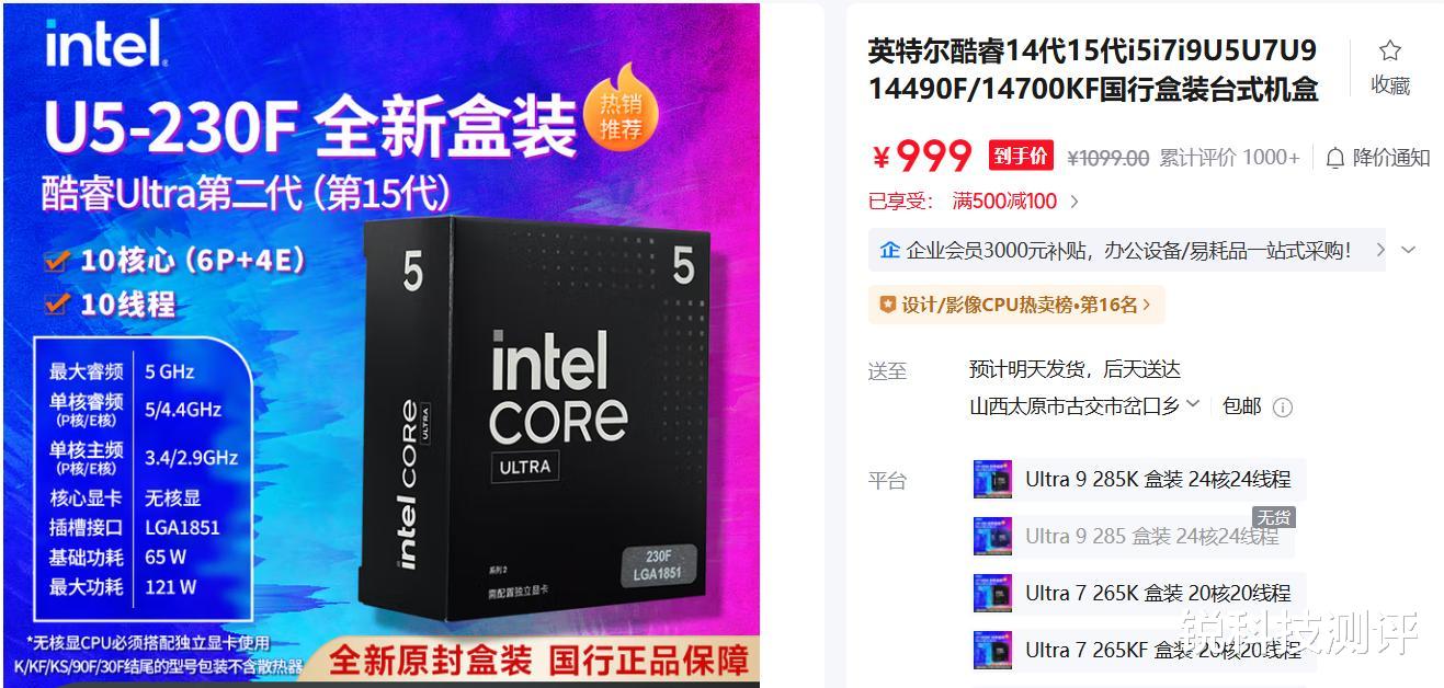 三、尝鲜新款:用新硬件,2年不落伍喜欢体验新技术、不想频繁升级的玩家,Ultra5 230F/225F新平台是优选,兼顾当下体验与未来扩展性。