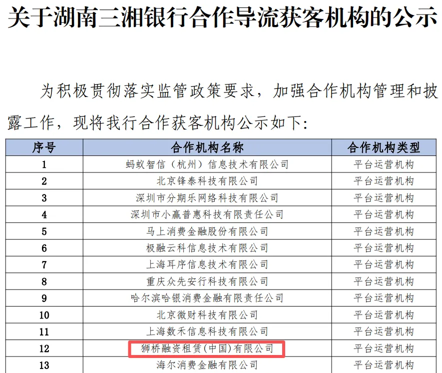 其中,新增一家平台运营机构——狮桥融资租赁(中国)有限公司。