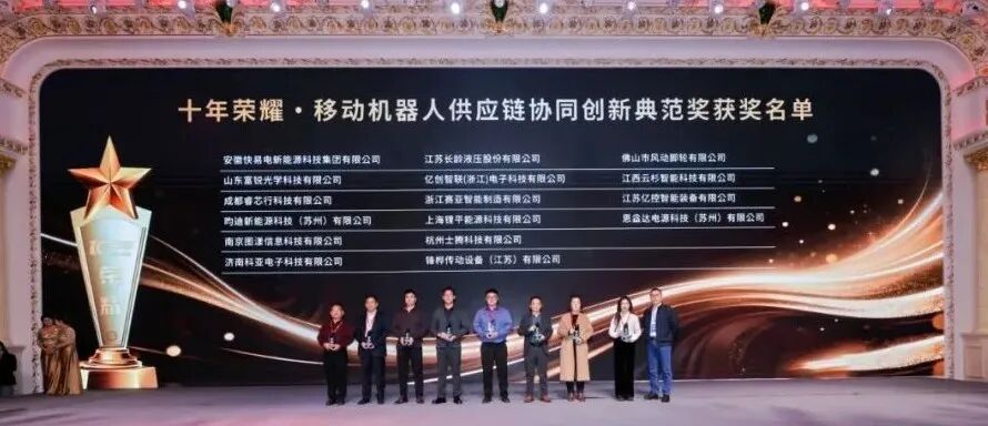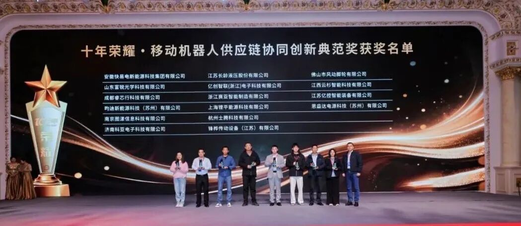 12月3日,在由合肥市包河区人民政府、移动机器人产业联盟(以下简称CMR产业联盟)、人形机器人场景应用联盟联合主办的“2025(第八届)移动机器人行业发展年会”上,十年荣耀·移动机器人供应链协同创新典范奖隆重颁发!