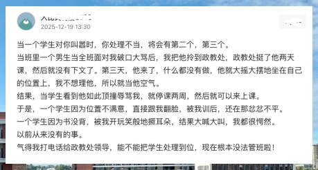 你遇到过“学生管不住”的情况吗?你觉得老师该怎么管学生?欢迎在评论区聊聊你的看法——我们一起想办法,别让老师“孤立无援”!