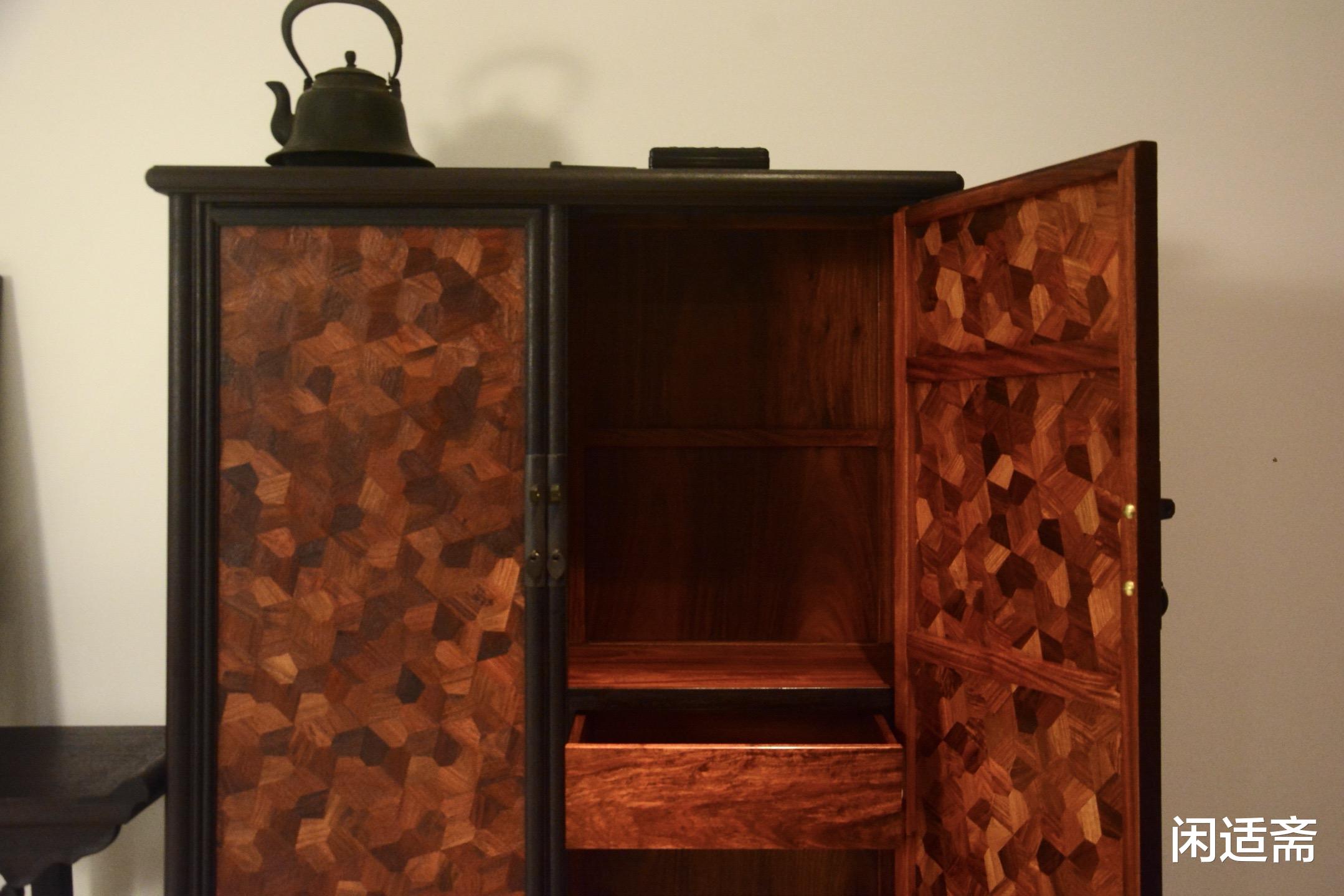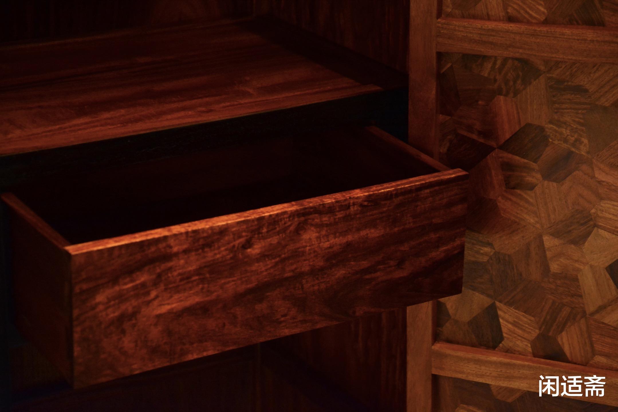 作为“读古鉴今”之作,此柜在坚守明式经典内核的同时融入创新设计:保留圆角柜圆润转角、简洁柜身的标志性特质,契合文房空间的雅致氛围;优化柜体内部格局,增设分层收纳区域,可精准适配不同物品的收纳需求,实现“藏展相宜”。置于书房,亦或安放于茶室,可让空间整洁有序。它既是实用的陈设收纳器物,亦是承载明式美学、名贵木韵与当代匠心的收藏雅器,让传统韵味在现代空间中焕发新生。
