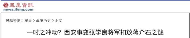 凤凰资讯 一时之冲动?西安事变张学良将军扣放蒋介石之谜