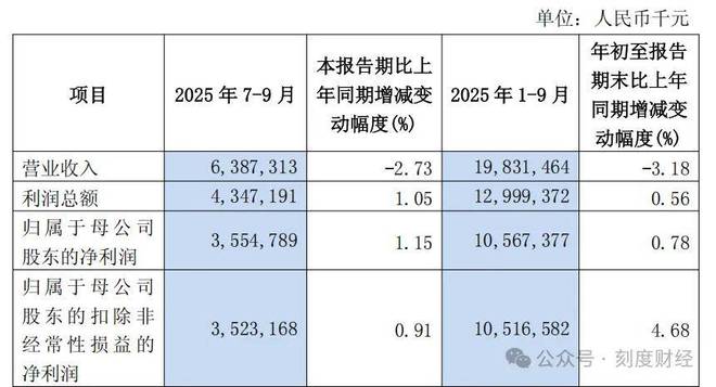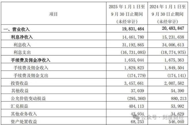 财报显示,2025年前三季度该行实现营业收入198.31亿元,同比下降3.18%,归母净利润105.67亿元,同比仅微增0.78%。