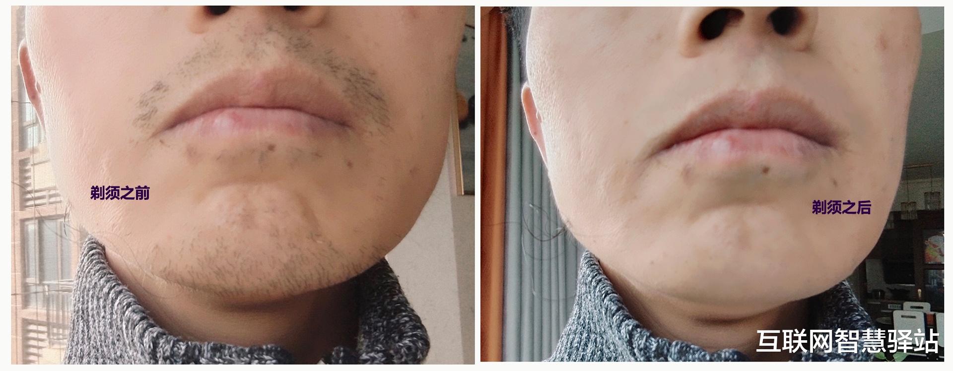 ▲ 实际剃净效果同样惊艳:胡茬、黑点无一残留,连下巴拐角、痘痘边缘等传统难剃区域也能紧密贴合、一剃到底,真正实现了高效、舒适、零死角的顶级剃须体验。