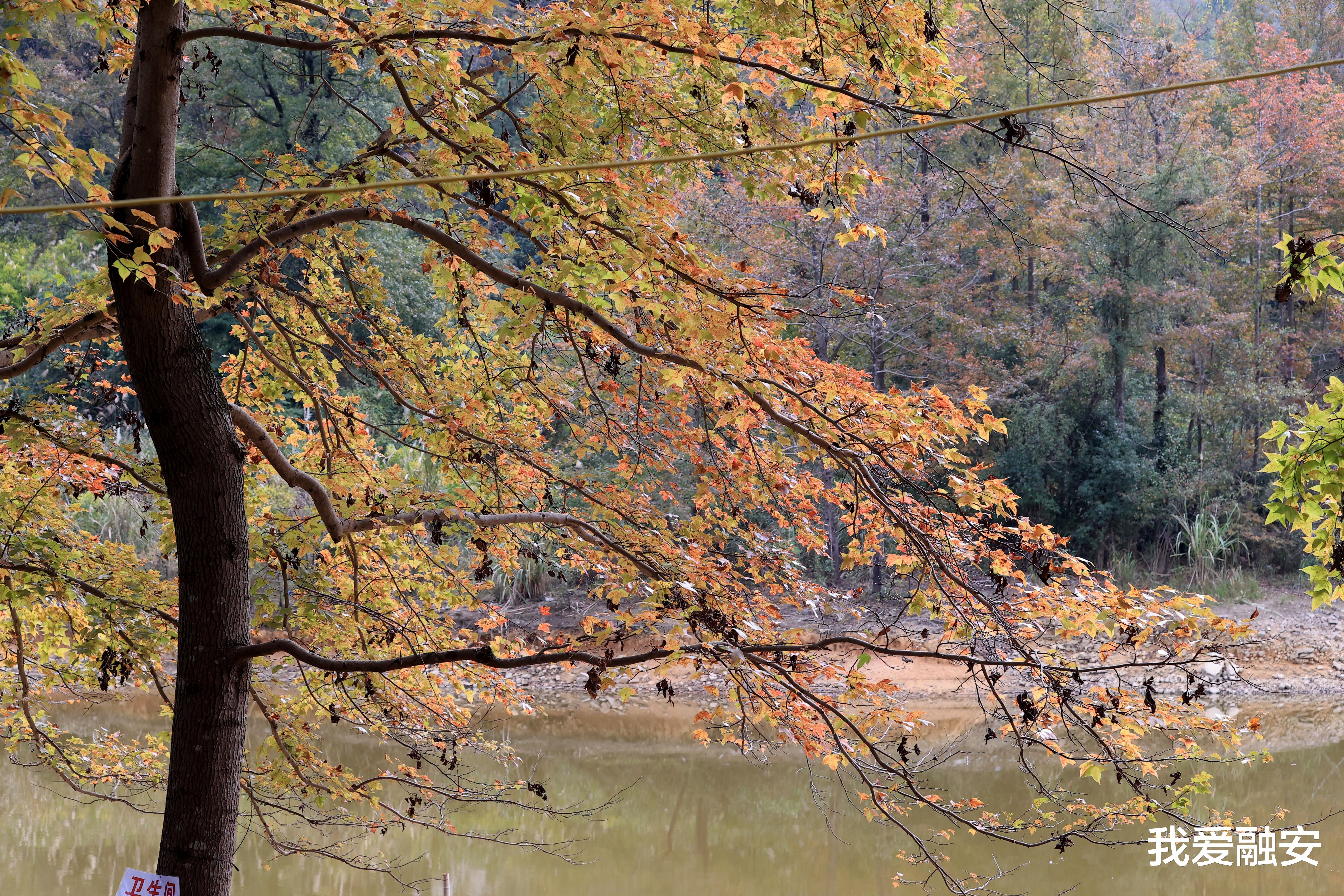 以上图片:11月23日,在广西柳州市融安县泗顶镇马田村都昌水库拍摄的“枫景”。(谭凯兴 摄)
