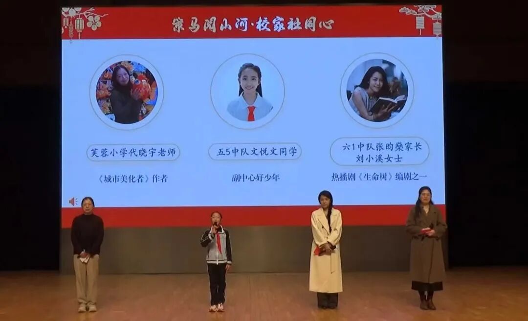 全校师生于各班教室同步重温热播剧《生命树》片段,感悟岗位坚守的动人力量。校家社代表《生命树》编剧之一、六1中队学生家长刘小溪女士以及代晓宇老师和五5中队的文悦文同学分享岗位担当的故事,从少年奋进、教师坚守再到家长助力,同心同行绘就成长底色。