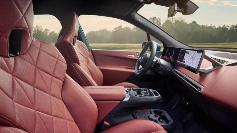 最后,走进车内,新款宝马iX内饰则主要是针对座椅进行了强化升级,不仅拥有更加明显的造型轮廓,增强椅背宽度、腰部支撑等横向支撑;而且还采用了包括M专用缝线的Atlas灰色/黑色超细纤维/Sensatec、Amido 皮革或Castanea 皮革等材质包覆,整体质感进一步得到提升。