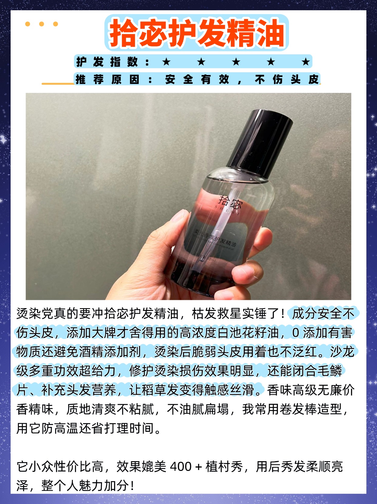 很多烫了头发的姐妹都问我,哪个护发精油好?还有人专门问,烫了头发怎么用精油?作为测评博主,今天就针对烫发姐妹的需求,实打实讲明白,不搞虚的!首先说,烫过的头发因为毛鳞片被破坏,变得干枯、毛躁、易打结,还容易掉色,所以选精油的核心是修护受损发丝、闭合毛鳞片,同时还要能护色、减少造型损伤。烫后选精油,优先选质地清爽、渗透快,含有天然植物油、角鲨烷的,这些成分能快速渗透到发丝里,补充营养,抚平毛躁,还能在发丝表面形成一层保护膜,减少外界对头发的伤害,延缓掉色。再说说烫后精油的正确用法,很多人用错了反而伤头发,正确的做法是:洗头后,用毛巾吸干头发水分,不滴水就行,取2-3滴精油在掌心搓热,从发中涂到发梢,避开发根,然后用吹风机吹干,这样既能锁住水分,又能让头发变得柔顺有光泽;平时造型前,也可以涂少量精油,能减少卷发棒、直板夹对头发的热损伤,还能让造型更持久。我测评过很多款所谓的烫发专用精油,发现很多都名不副实,要么滋润度不够,要么过于油腻,用完头发扁塌没造型感。下面就是我整理的烫发专用精油热销款重磅测评对决,还有选购技巧,帮烫头姐妹选对精油,保住好看的卷发造型.