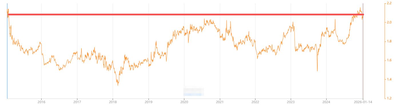 比今天还高的,唯有2015年牛市。当年杠杆比例更高,超过3%。