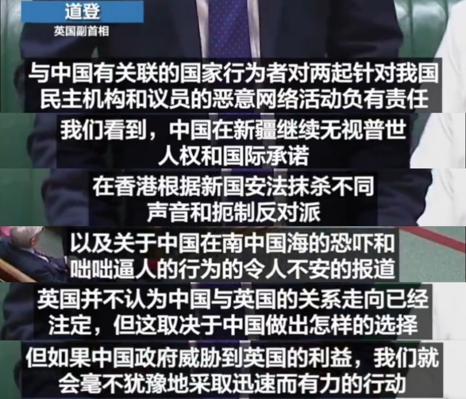 既要合作,他明确承认中国是世界三大力量之一,直言“缺乏对华接触是失职”,强调必须“重新启动”对华贸易合作;既要威胁,又无端指责中国“对英国构成国家安全威胁”,声称要“继续采取应对措施”;既要干涉,还对香港事务说三道四,妄称英国“有责任发声”。