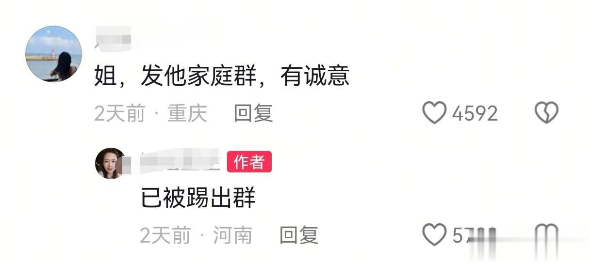 有人建议牛女士把她丈夫的所作所为发到男方的家族群里,牛女士回复,她早就被踢出群里,早就状告无门。