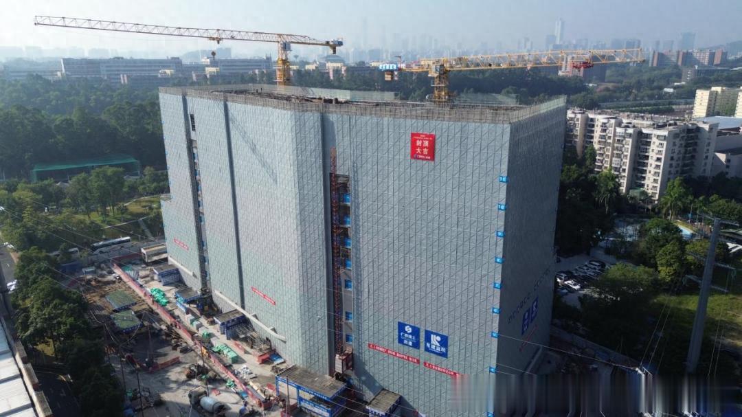 近日,由天河区代建局承建的广东省骨科研究院(长兴院区)项目迎来一个重要的节点——主体结构封顶,这标志着项目建设正式进入机电安装、装饰装修的全新阶段。