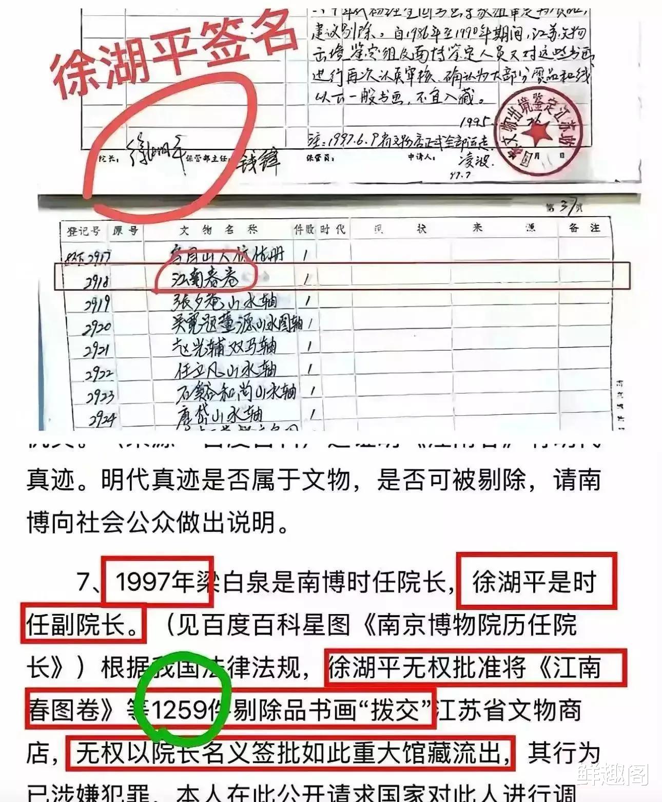 2001年又以6800元的价格卖给了“顾客”。而这两个操作,都有一个人的身影,他就是南京博物院前院长,徐湖平。针对此事, 徐湖平称“自己没有经手,不是鉴定专家,以身体不好,已经退休”为由,推的干干净净。而郭礼典的实名举报则再一次将徐湖平推向了风口浪尖。对于郭礼典的举报,徐湖平表示会在合适时机发声回应,等上级调查结果。