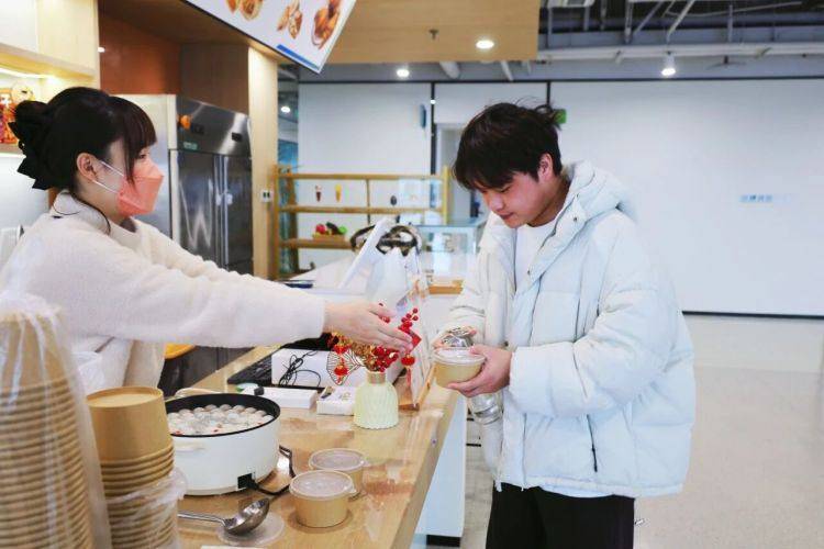 活动现场暖意融融、年味十足。园区工作人员精心准备了黑芝麻等传统口味与多款创新口味汤圆,清水煮沸、汤圆翻滚,热气腾腾的汤圆新鲜出锅,香甜气息弥漫全场。园区员工有序排队、品尝汤圆,在软糯香甜的滋味中感受节日温情,在轻松愉悦的交流中拉近彼此距离,初春的寒意被这份温暖彻底驱散,办公空间洋溢着浓浓的烟火气与团圆氛围。