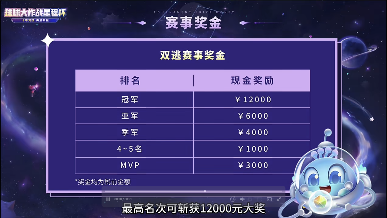 赛事总奖金4万元,分配机制公平且富有激励性:冠军队伍将赢得12000元大奖,赛事还特别设置了MVP专属奖励以及单逃表演赛冠军奖励,可获得3000元奖励,即使是第4-5名也能收获1000元奖金,这样的奖金设置既鼓励团队协作,也不埋没个人高光表现。