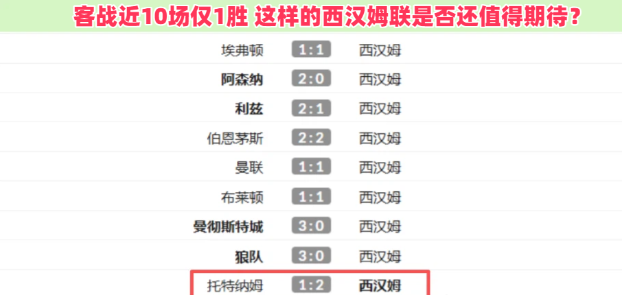 西汉姆联对阵伯恩利的胜率高达53%,是他们为数不多的心理优势。可是本赛季的西汉姆联,胜率只有12.5%,近16场比赛仅赢2场。这种状态,就算历史交锋再占优,也没用!