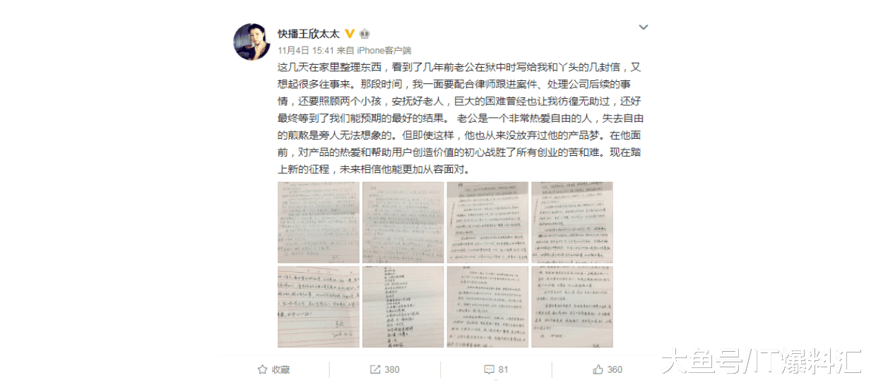 【快播王欣狱中所写信件被妻子首都公开,内容令网友动容】信中,王欣写道狱中的生活十分单调,每天最重要的生活就是吃饭和睡觉,作息十分规律。但他在信中经常提到自己对妻子的思念,和对两个女儿的关心。#王欣#
