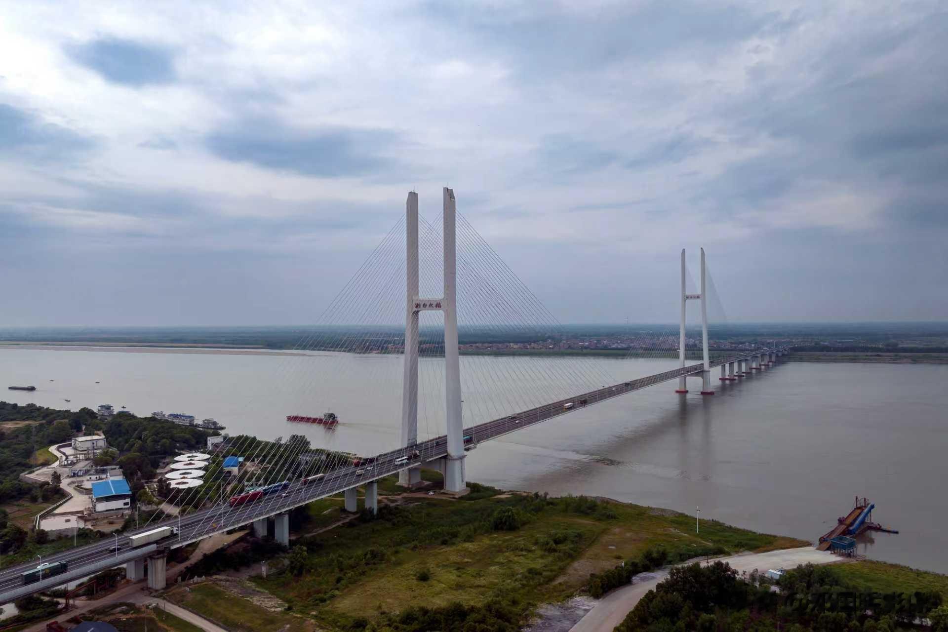 许广高速跨越长江的荆岳大桥,一桥飞架南北,将湖南的岳阳和湖北的荆州天堑相连,巍巍壮观。
