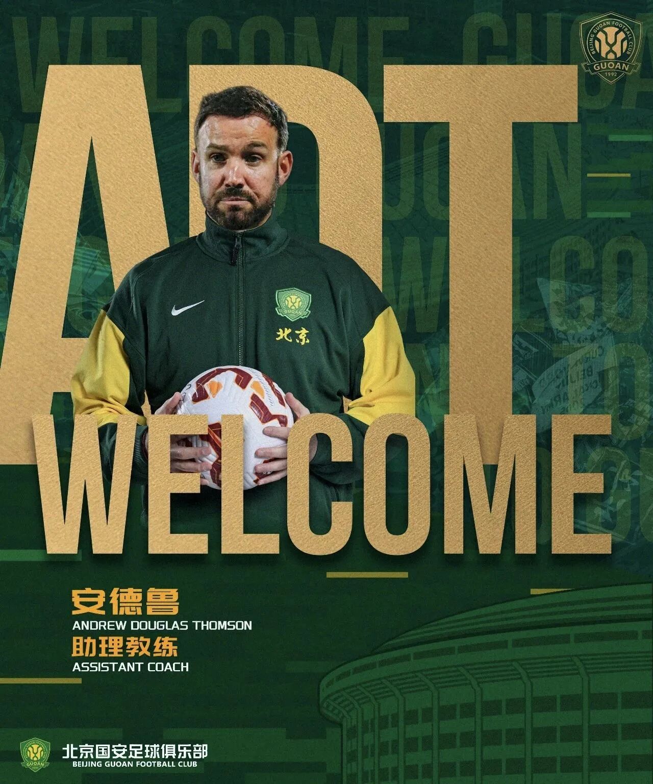 2026年1月26日,北京国安足球俱乐部正式对外宣布,葡萄牙籍教练费利佩(Filipe Duarte Da Silva Pedro)、英国籍教练安德鲁(Andrew Douglas Thomson)及奥地利籍教练汉斯(Hans-Peter Berger)正式加入一线队教练组,三位教练已同步抵达海口,与球队汇合投入第一阶段冬训,为新赛季备战注入专业力量。