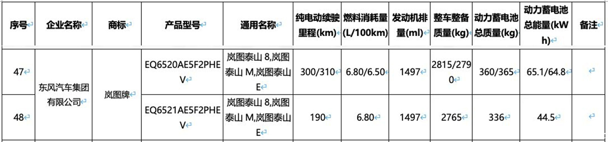 上个月,东风旗下的岚图品牌推出了全新的大型SUV,岚图泰山,在工信部最新公布的第402批新车申报目录中,岚图品牌又申报了