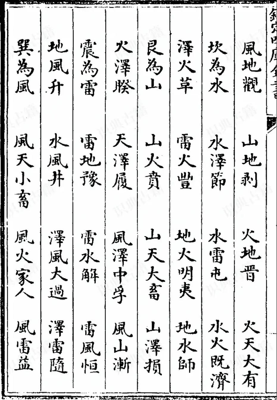 八卦两两配对,上下组合。