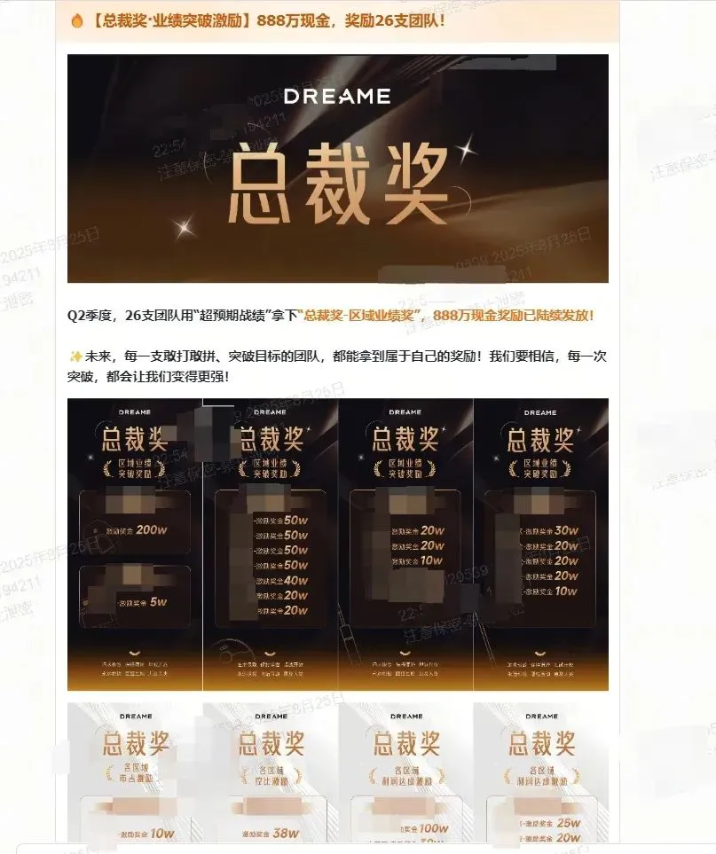 据追觅员工透露,追觅科技6月份发放额外奖金超过2200万元,7月份或近4000万元。同时,追觅还设有团队奖。据媒体公开报道,去年一个季度,表现优异的团队及个人,至少有3个团队拿到百万奖金,多名员工个人拿到了6位数奖金。