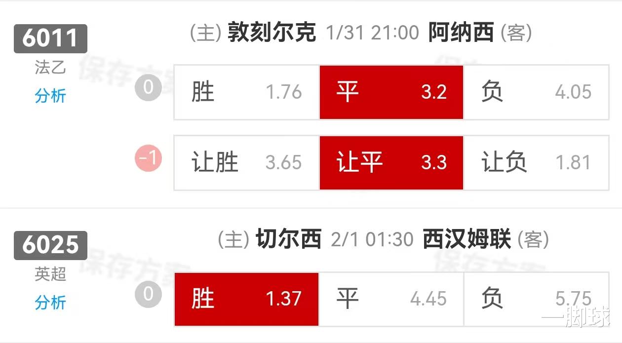 竞彩推荐:平让平 比分参考:1-1 2-1周六 025 英超 切尔西 VS 西汉姆联
