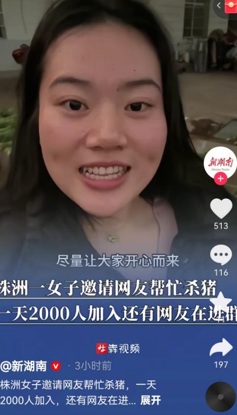 可以说这位湖南妹子就是这场合川千人杀猪宴的最大受益人,直接成了全网第二个呆呆妹了,不仅把合川的流量承接了过来,打响了自己的知名度,还满足了不少网友没能亲身参加合川盛会的体验。