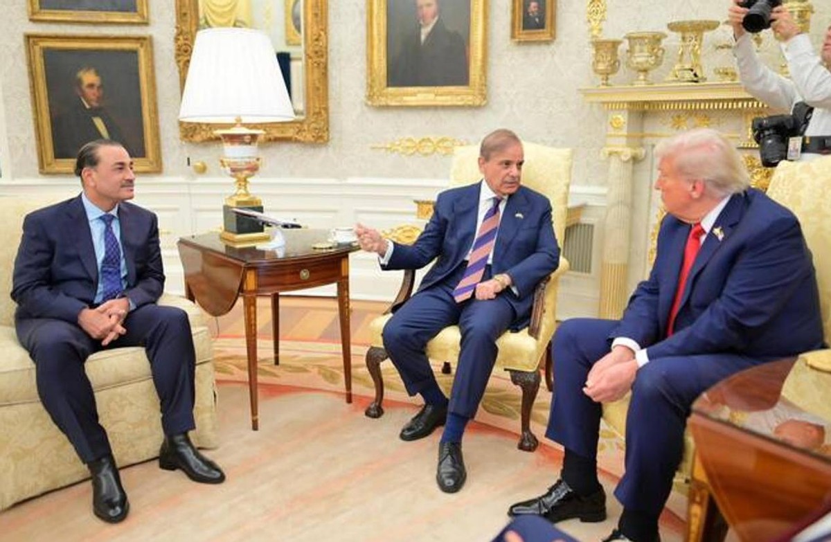 白宫椭圆形办公室的灯光下,巴基斯坦陆军元帅穆尼尔肩章上的金色徽章微微反光,他面前的特朗普笑容满面却目光如炬。