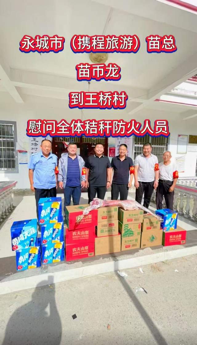 近日来,河南携程旅游总公司永城分公司经理苗来访、马桥镇王桥村展庄生活超市、前苗庄超市苗建春、桐沟超市苗广杰、以及在外经商王桥村大武庄的武斌斌等爱心企业主动履行社会责任,向奋战在秸秆禁烧一线的工作人员捐赠了饮用水和方便食品,为马桥镇王桥村三夏”生产注入暖心力量。