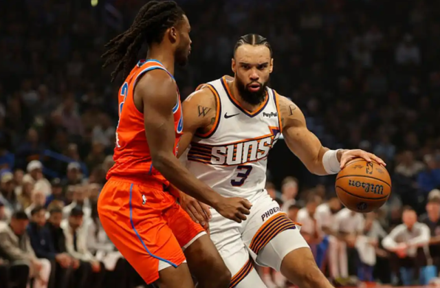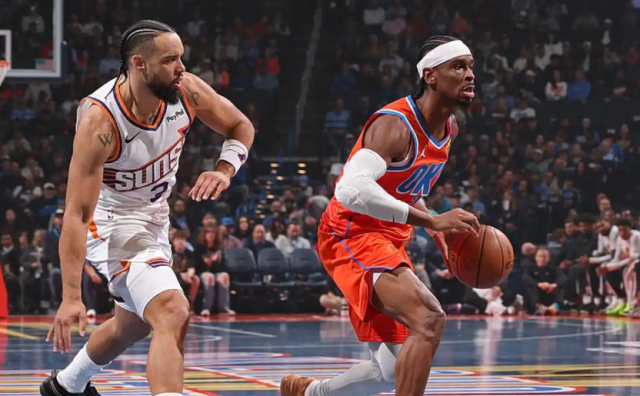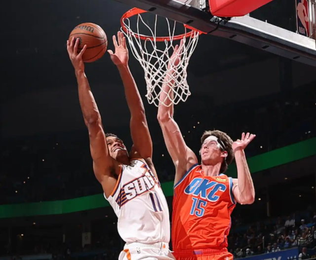 本场比赛前,雷霆已豪取15连胜,状态火热;太阳虽排名西部中游,但此前交锋中仅以4分惜败,此番再战仍被寄予“抗衡”期待。然而,布克与格林的缺席让太阳战力骤减,首发阵容不得不由阿伦、吉莱斯皮、狄龙、奥尼尔和马威临时拼凑;雷霆虽缺阵两名轮换球员,但亚历山大、切特、杰伦·威廉姆斯等核心悉数登场,首节便以11-2的攻击波奠定基调。