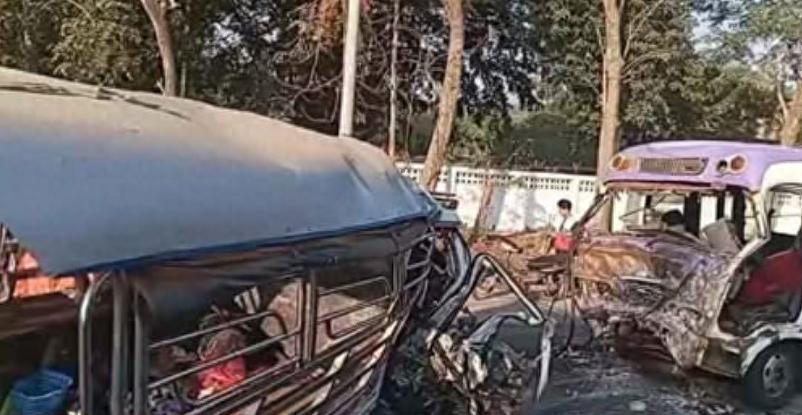 当地一位居民向媒体透露,2月3日早上7点多,在仰光-勃固大道茵岱村附近,一家服装厂的接送车与一辆名为“虎王”的客车迎面相撞。