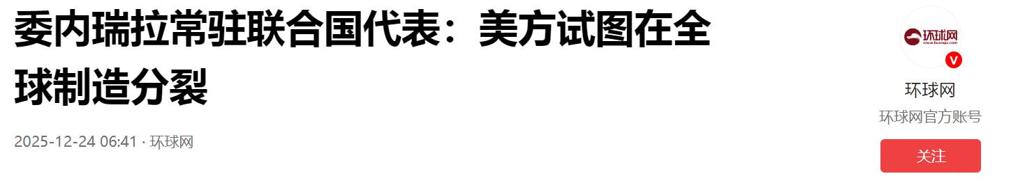 霸权旧梦,终将醒来特朗普在12月16日公开表态,称“委内瑞拉已被我们包围,直到他们归还属于美利坚的石油、土地与资产。”在他的语境中,拉丁美洲的资源似乎天然属于美国,而其他国家购买委内瑞拉石油就是“偷窃”。