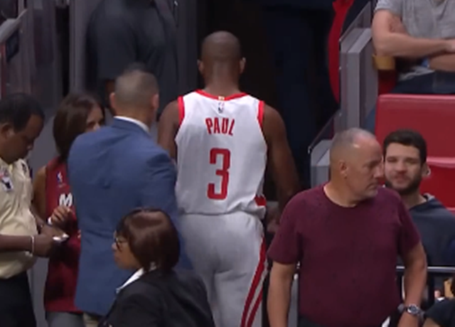 #火箭vs热火# 【眼看火箭正在连胜的势头中,保罗却意外的受伤了】 火箭客场挑战热火,比赛打到第二节中段,保罗在一次救球的过程中不慎扭到了自己的左大腿,现已返回了更衣室,本场比赛不再回归! 目前,火箭已经取得了一波5连胜,也重新回到了西部前8,士气可谓正高涨,保罗的意外受伤,不知会不会对他们造成影响,只希望他的伤无大碍,能够早日回归吧!