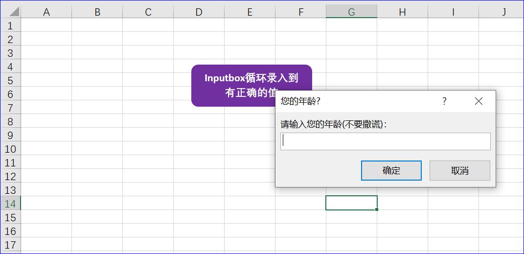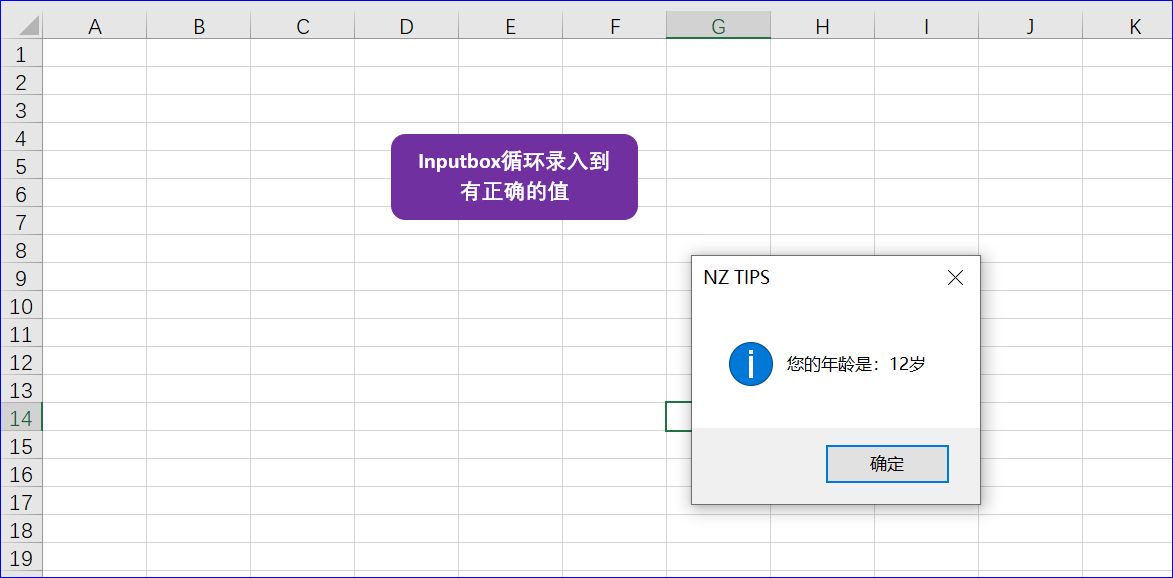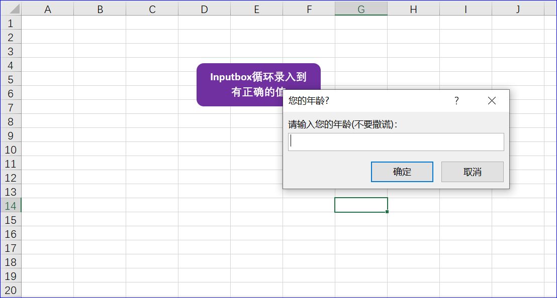 程序的目的是利用 Inputbox循环录入到有正确的值。在这个应用非常有用,一旦程序中确定了录入数据的准则,就会要求用户按照此准则录入数据,否则程序会一直要求用户录入正确的数据。在这个程序中我假定要求用户录入年龄的值。