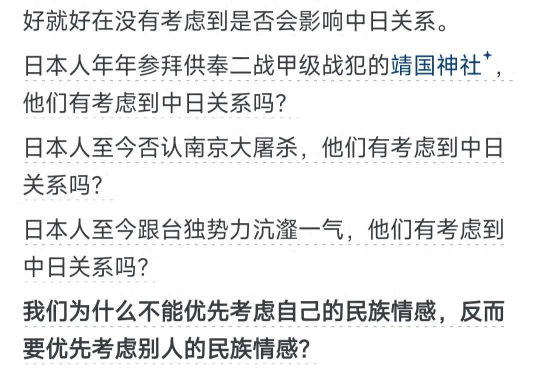 如果日本想要搞好中日关系,就应该好好把历史问题正视一下,主动权在他们而不是我们。我们只是平静地叙述应该叙述的东西,也不知道有些中国的日本友人在那皇帝不急太监急什么。