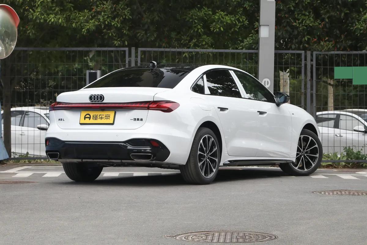 刚进店里,一眼就看见了停在C位的奥迪A5L,说实话,作为奥迪粉,我对奥迪的设计语言早就烂熟于心,但看到实车的那一刻,心里还是咯噔了一下,真帅。我这次试驾的车型是那种特别高级的青城绿色,听销售说这是七种个性化配色里的一种。这颜色绝了,不是那种浮夸的亮绿,而是一种充满东方韵味的莫兰迪绿,在展厅的灯光下泛着幽幽的光泽,既有豪华车的厚重感,又不失年轻运动的活力。绕着车走一圈,长宽高分别是4908×1860×1427mm,轴距更是达到了2969mm,看起来非常修长大气。前脸依旧是奥迪标志性的六边形进气格栅,但这次更有攻击性,引擎盖上的线条设计很有意思,销售介绍说这是仿照猎豹泪线打造的棱线。真正让我这个“灯厂”粉丝兴奋的是大灯,数字式LED日光灯,那是真的科技感满满,支持多种灯光签名,晚上开出去绝对是这条街的靓仔。车尾的设计也是简洁利落,贯穿式的LED尾灯和前大灯呼应,关键这尾灯可不简单,辅助泊车或者遇到紧急情况时,还能投射警示符号,这功能太实用了。