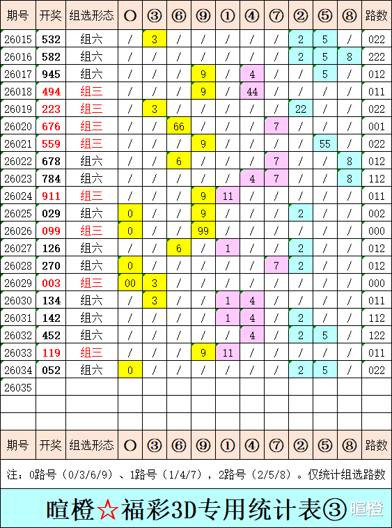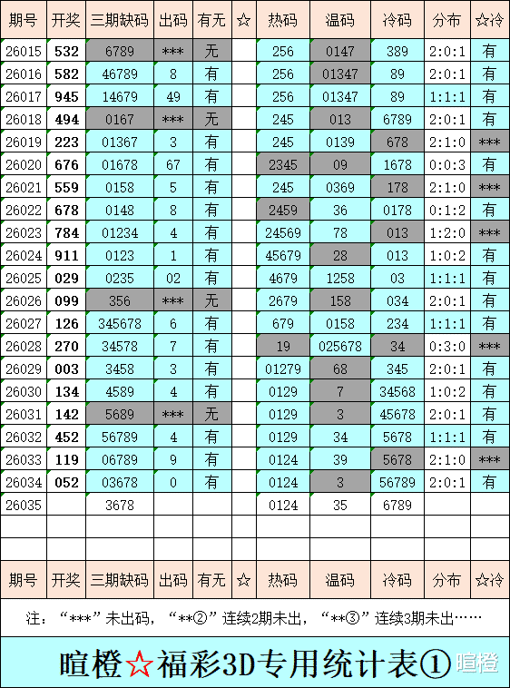 26035期:暄橙福彩3D综合条件(今日立春)