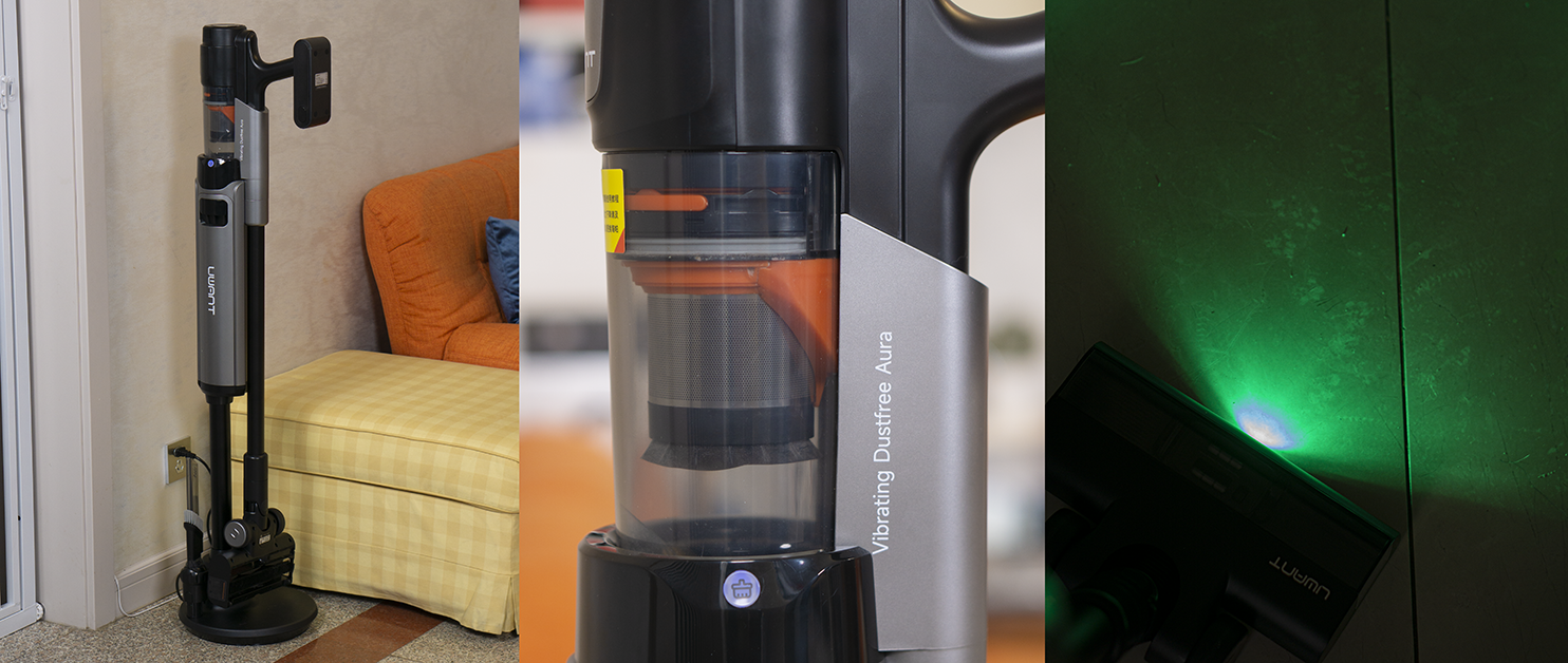 在深度使用了两周之后,我们突然有了一个想法。但凡我们想要挑刺的地方,友望似乎早已料到一样,做了提前规避动作。比如说,我们找到了不容易辨识尘土的地面进行清洁,就会发现友望V400pro有着110°绿色光带,并在距地9mm的高度照射,能够让尘土无所遁形。