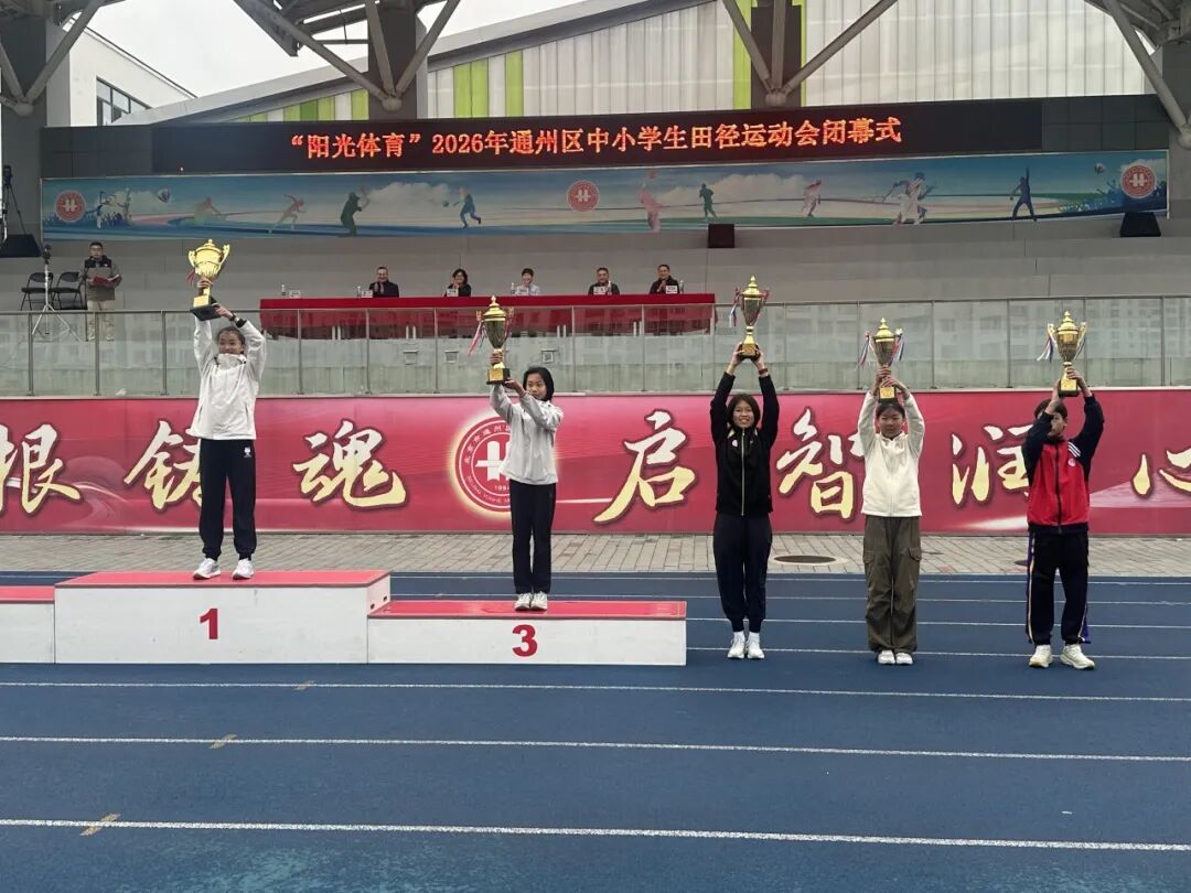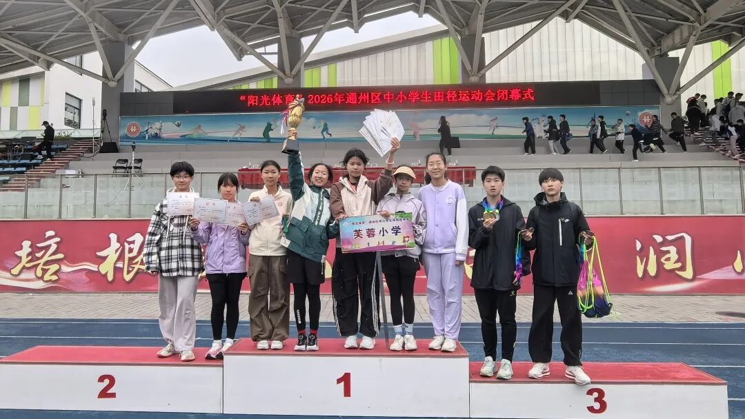 2026年“阳光体育”通州区中小学生田径运动会圆满落幕。芙蓉小学体育健儿心怀梦想、奋勇拼搏,在全区强手如林的队伍中乘风破浪、勇毅争先,继去年取得历史性突破获得团体季军后,今年继续捧得奖杯,斩获第五名的好成绩!少年意气,驰骋赛场;荣光加冕,不负韶华,他们以昂扬之姿、奋进之力,生动诠释了芙蓉学子的卓越风采,践行着“清新雅正 融通致远”的校训精神。
