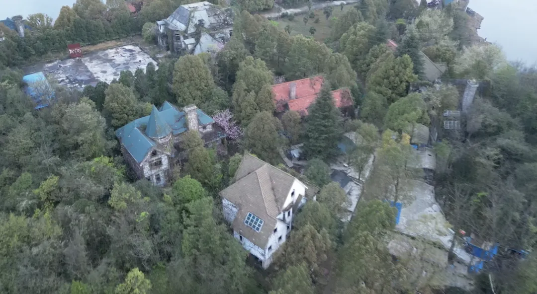 可惜随着红枫湖被划定为贵阳的饮用水源地,项目戛然而止,人员撤离,这些建筑便逐渐被自然与时光侵蚀,静静搁浅在半岛上。