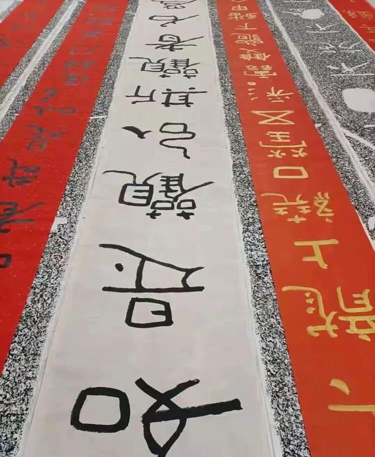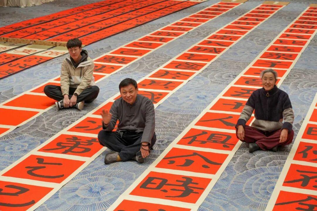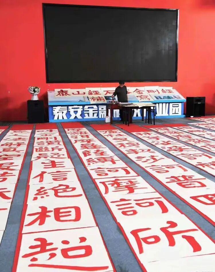 ▲《泰山经石峪金刚经》摩崖榜书补写场景剪影